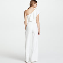 A chic jumpsuit is the perfect wedding dress alternative for the trendy bride! This toga asymmetrical jumpsuit is one that exudes style and sophistication.