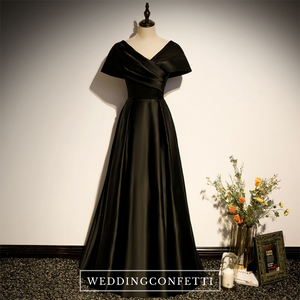 The Juliana Black Boat Neck Off Shoulder Gown (Customisable)