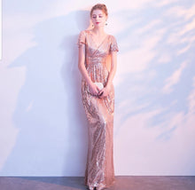With a deep V cutting and sequins, this elegant and alluring Bernice Gown is bound to put you in the centre of attention. Available in two options of flutter or 3/4 sleeves.