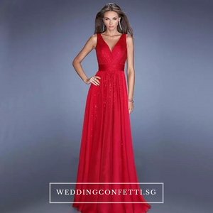 The Melania Blue/Red/Champagne V Neck Sleeveless Sequins Gown