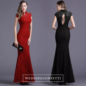 The Hensley Cheongsam Mandarin Collar Off White/Black/Red Lace Gown